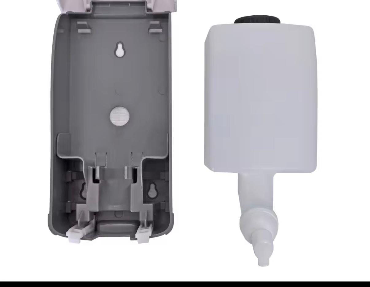 Material: Plasstic. Function: Liquid soap dispenser Color: White Capacity: 800-1000 ml Installation: wall mounted Application: Hotel washrooms, Wash area etc.